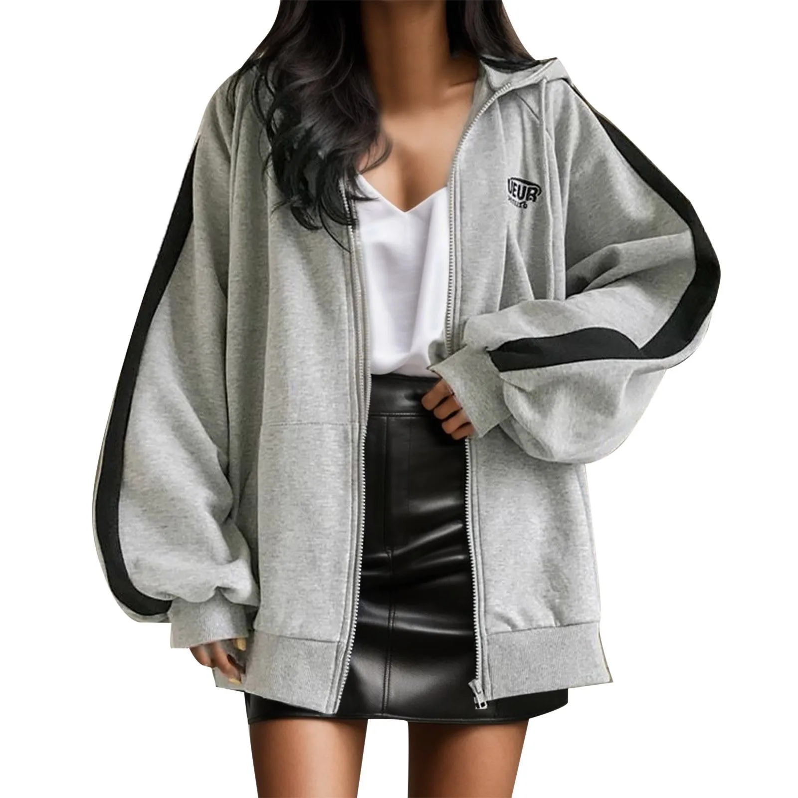 Женская Повседневная Толстовка большого размера, уличная одежда, пальто с капюшоном и карманами, свободные толстовки на молнии в стиле Харадзюку, куртка, женская одежда на молнии