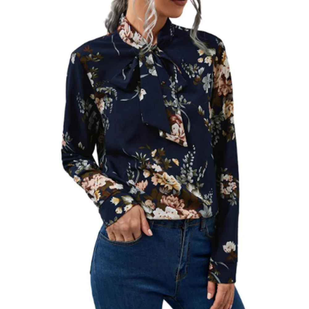 Женская Повседневная Туника с длинным рукавом и цветочным принтом