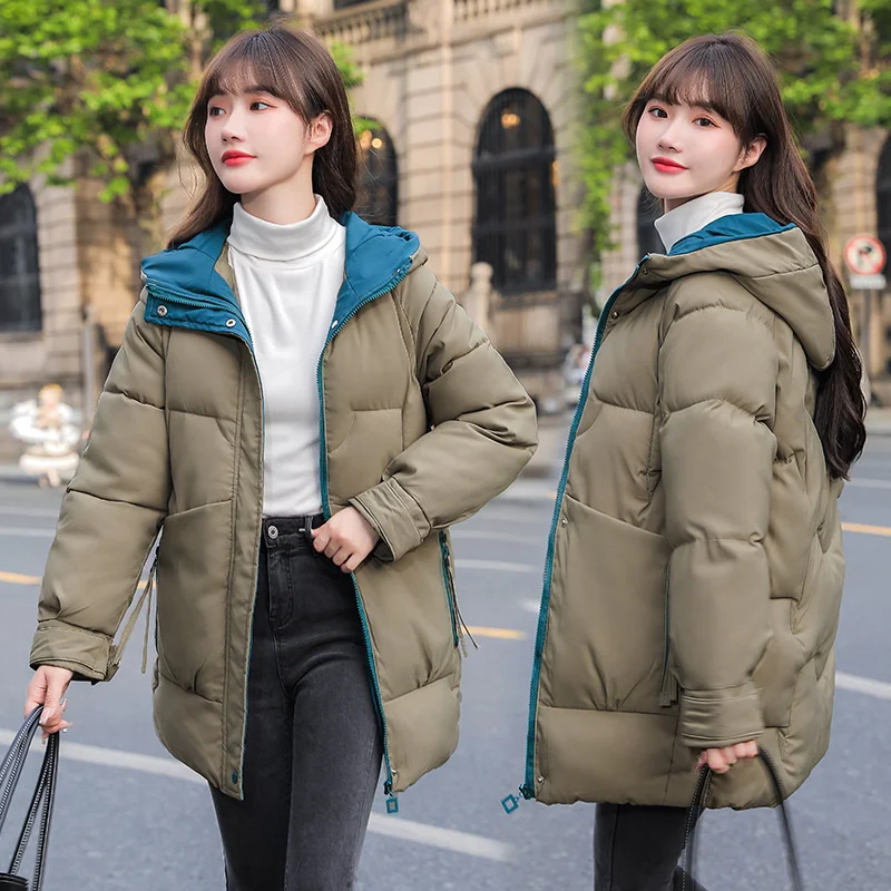 Женская Стеганая куртка средней длины, свободная Студенческая куртка с капюшоном в Корейском стиле, зима 2021