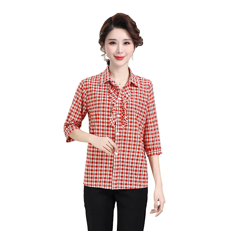 Женская Стильная блуза с полурукавом и воротником с оборками на весну и лето