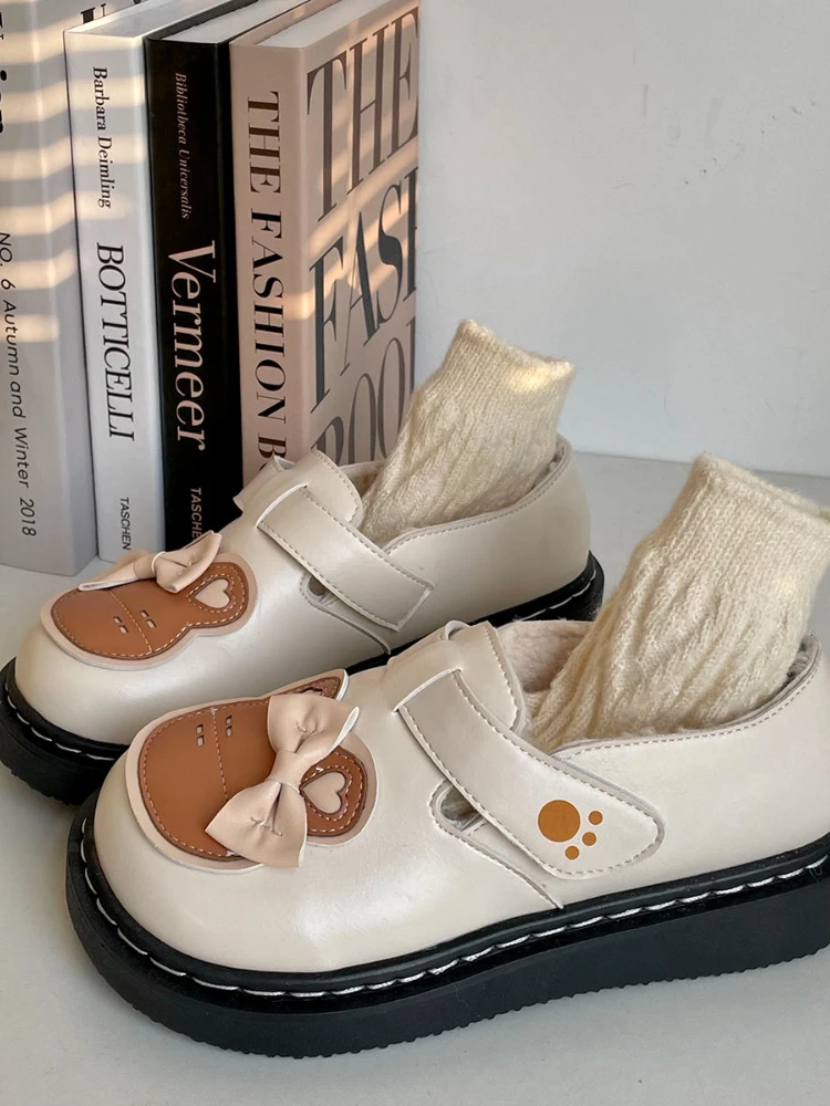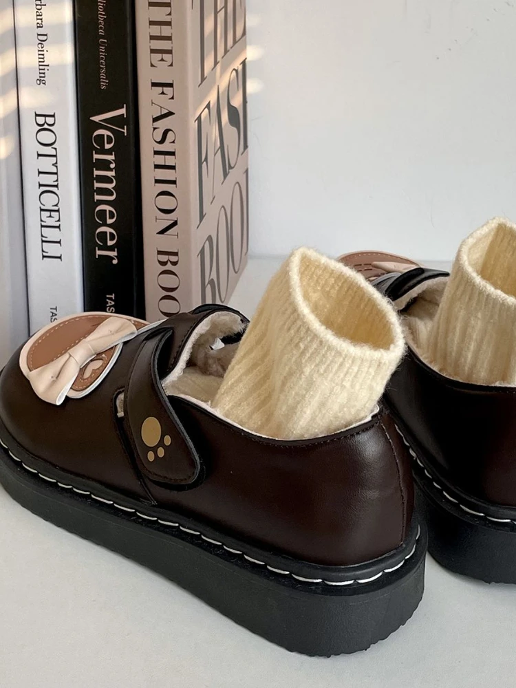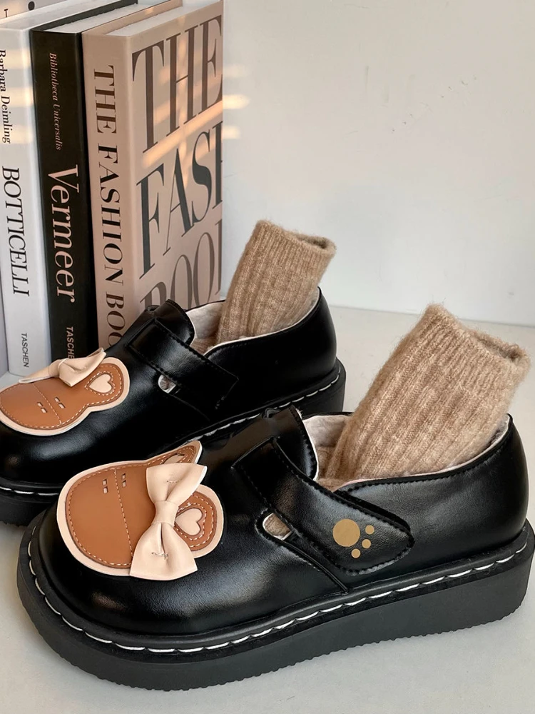 Женская Теплая Повседневная Удобная обувь с круглым носком в японском стиле