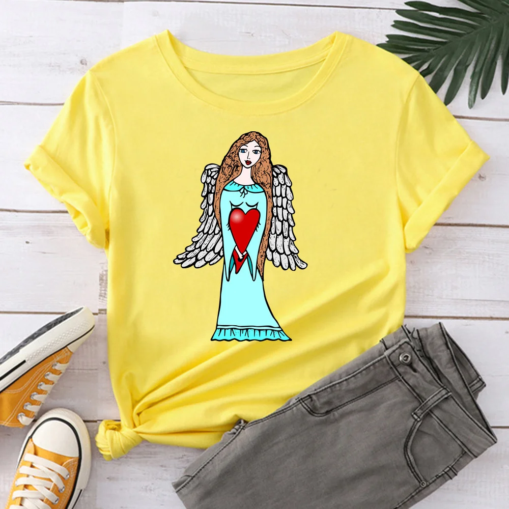 Женская Черная футболка с принтом крылья любви, женские топы в Корейском стиле Харадзюку с графическим принтом, 2021, милая женская футболка ...