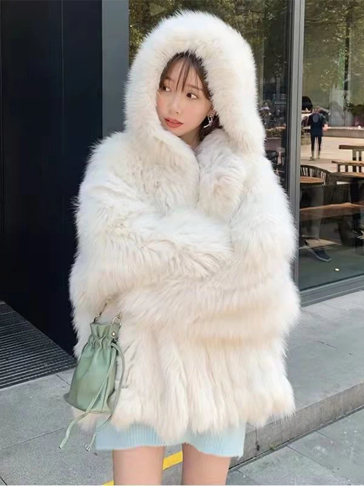 Женская Шуба из искусственного меха, просторная Повседневная Шуба с длинным рукавом и капюшоном, из искусственного меха, зима 2023