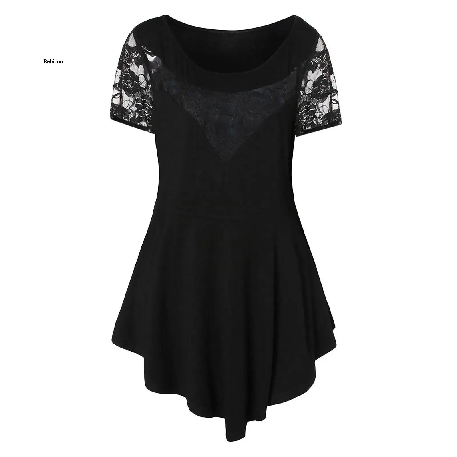 Женская ажурная футболка с цветочным кружевом, большие размеры 5Xl