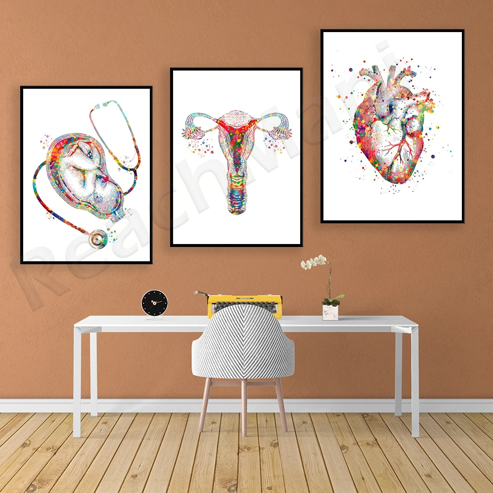 Женская анатомия, ребенок в матке, стетоскоп, фотография матки, медицинское искусство, Акушерство и гинекология, Постер, подарок для акушерс...