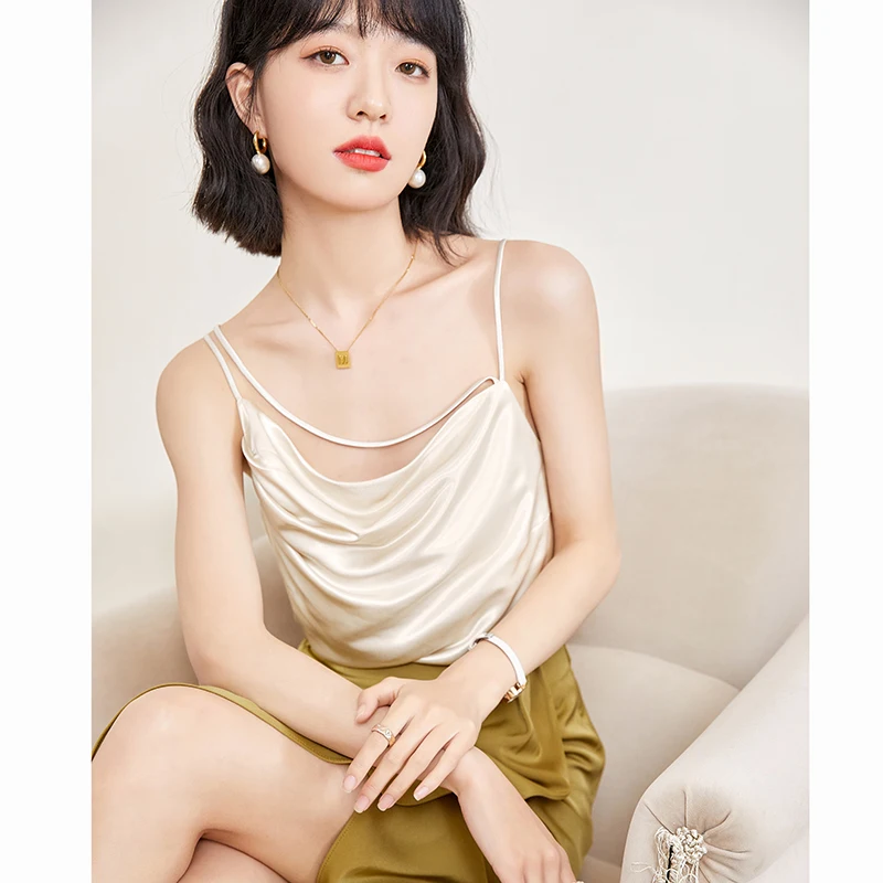 Женская атласная майка без рукавов, Однотонная футболка с разрезом, лето 2022