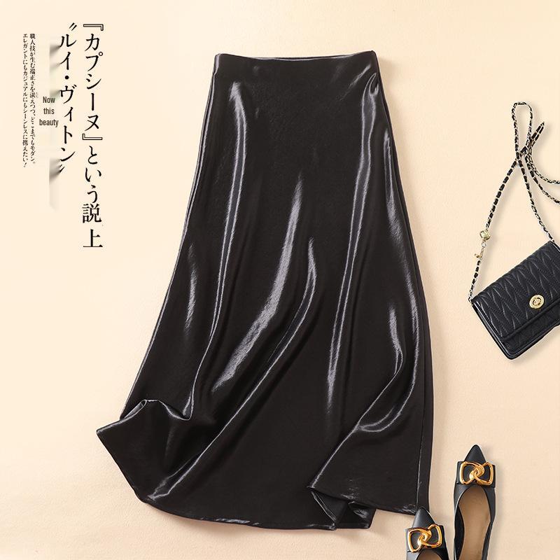 Женская атласная юбка миди А-силуэта - Эластичная талия, однотонная, летний стиль 3XL for 120-130 jin чёрный