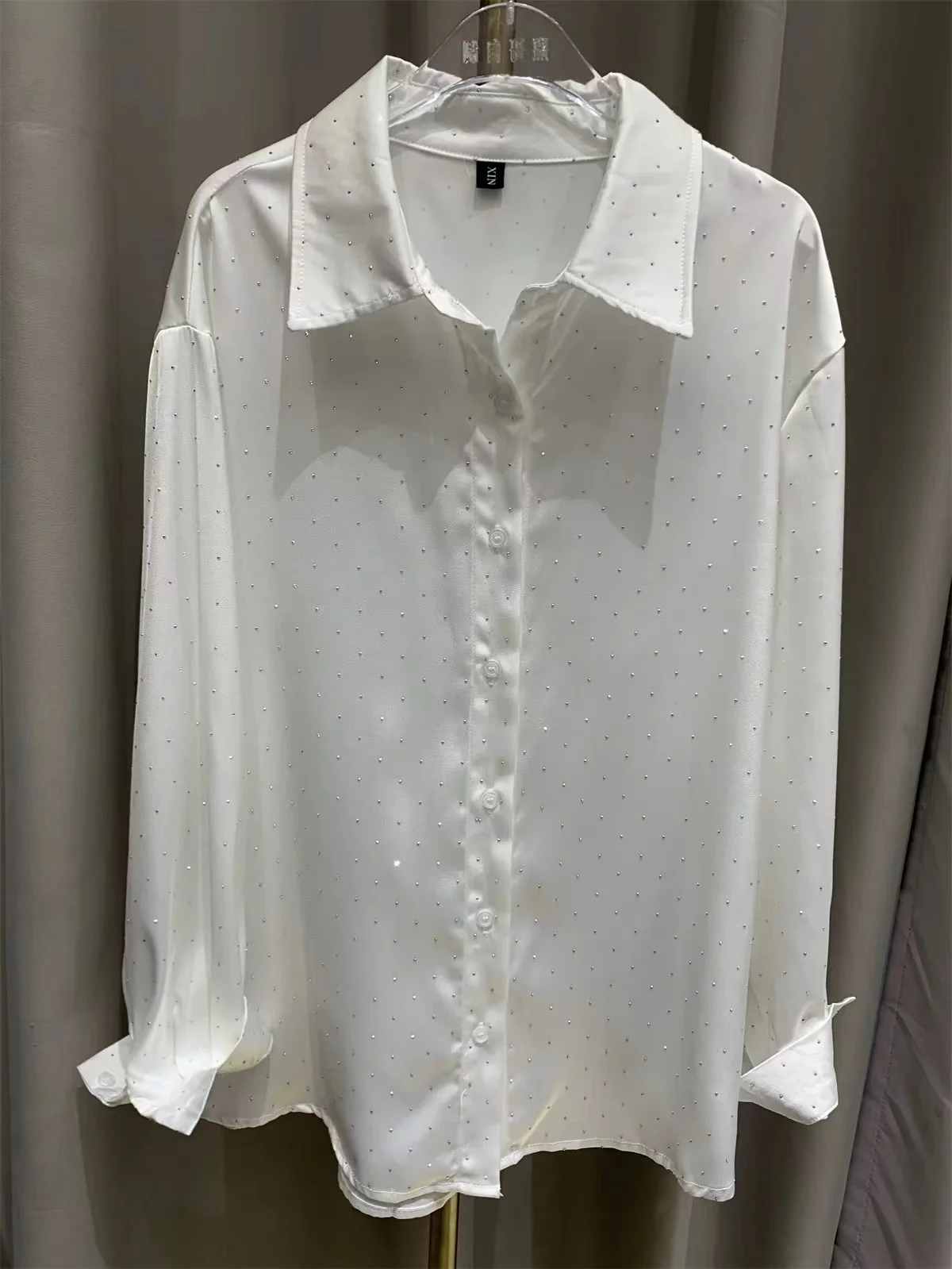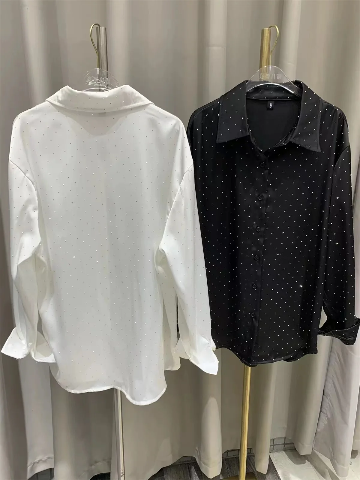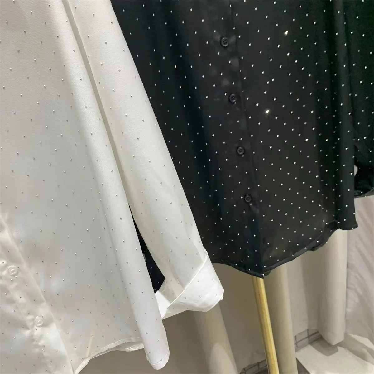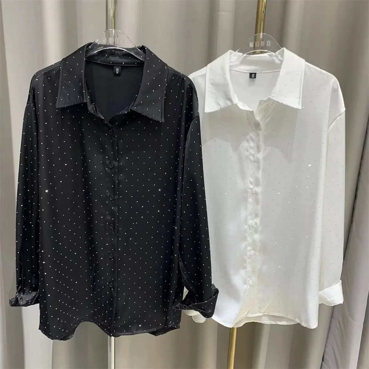 Женская ацетатная рубашка с длинным рукавом, черно-белая блузка на пуговицах