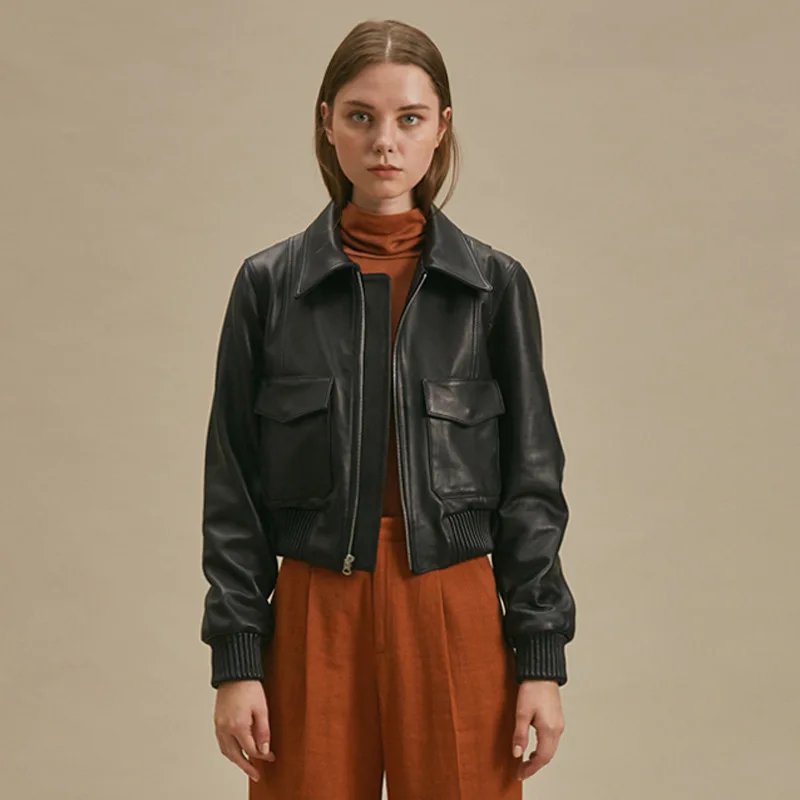Женская бейсбольная куртка из натуральной овечьей кожи, на осень/зиму