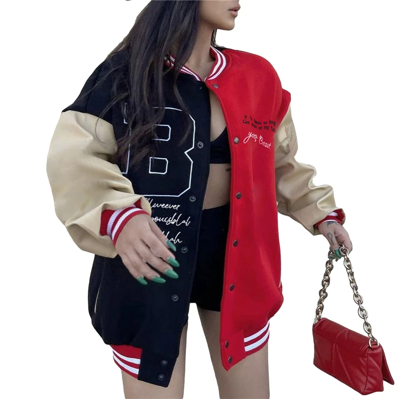 Женская бейсбольная куртка y2k С Вышивкой Букв, с воротником-стойкой и длинным рукавом, свободные топы, верхняя одежда в стиле 1920-х