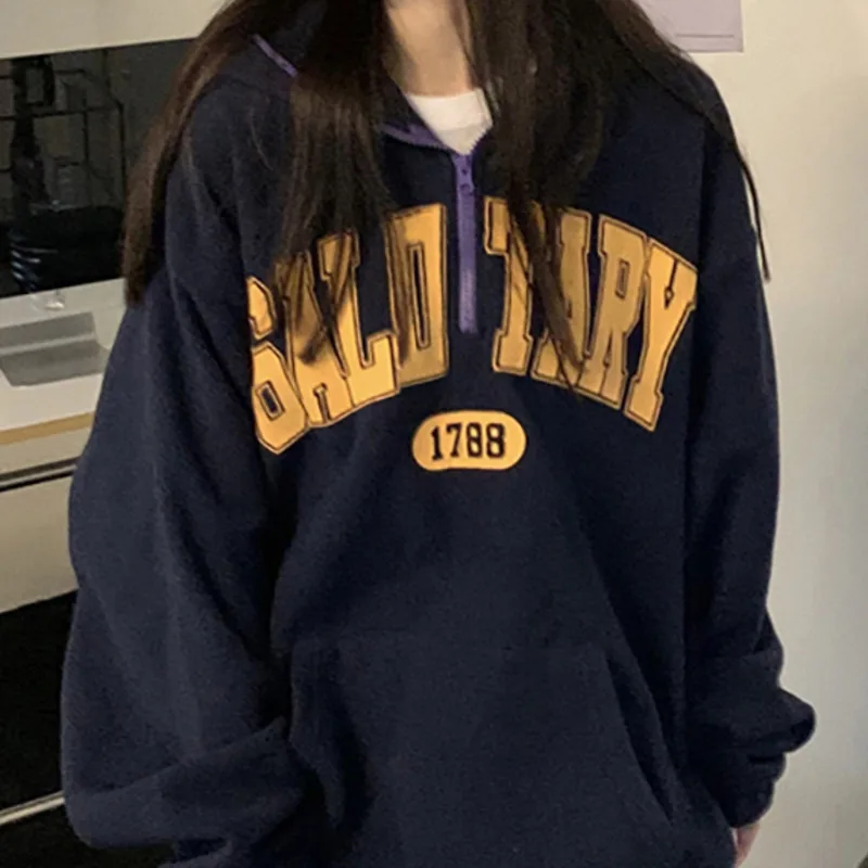 Женская бейсбольная форма с капюшоном, свободный свитер с длинными рукавами и надписью, осень 2021