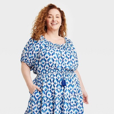 Женская блузка-крестьянка с рукавами до локтя - Knox Rose Blue Ikat, Синий