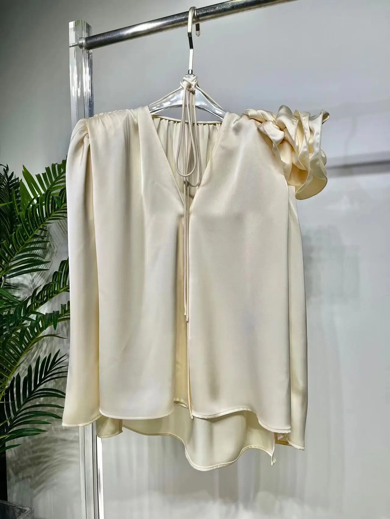 Женская блузка с аппликацией, модная Роскошная однотонная Свободная блузка, лето-весна 2023