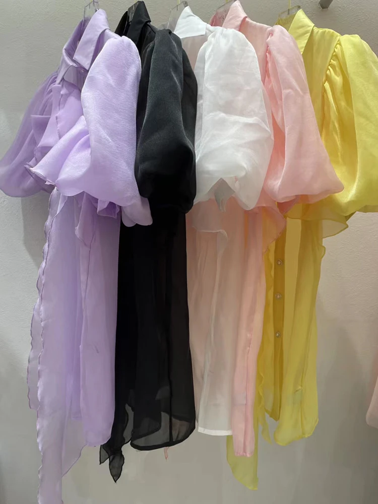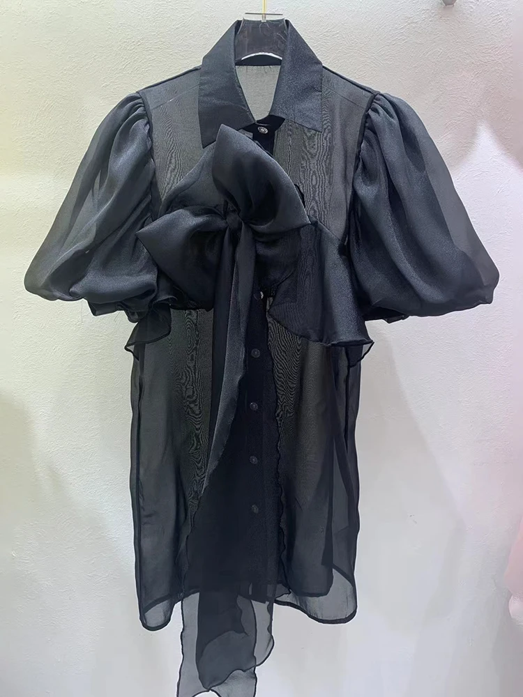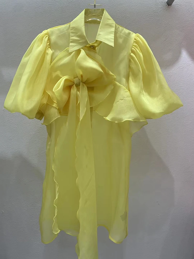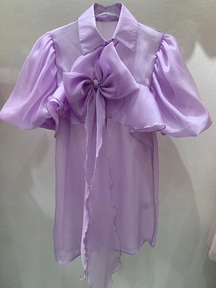 Женская блузка с бантом на воротнике двойной 2022, летняя, однотонная