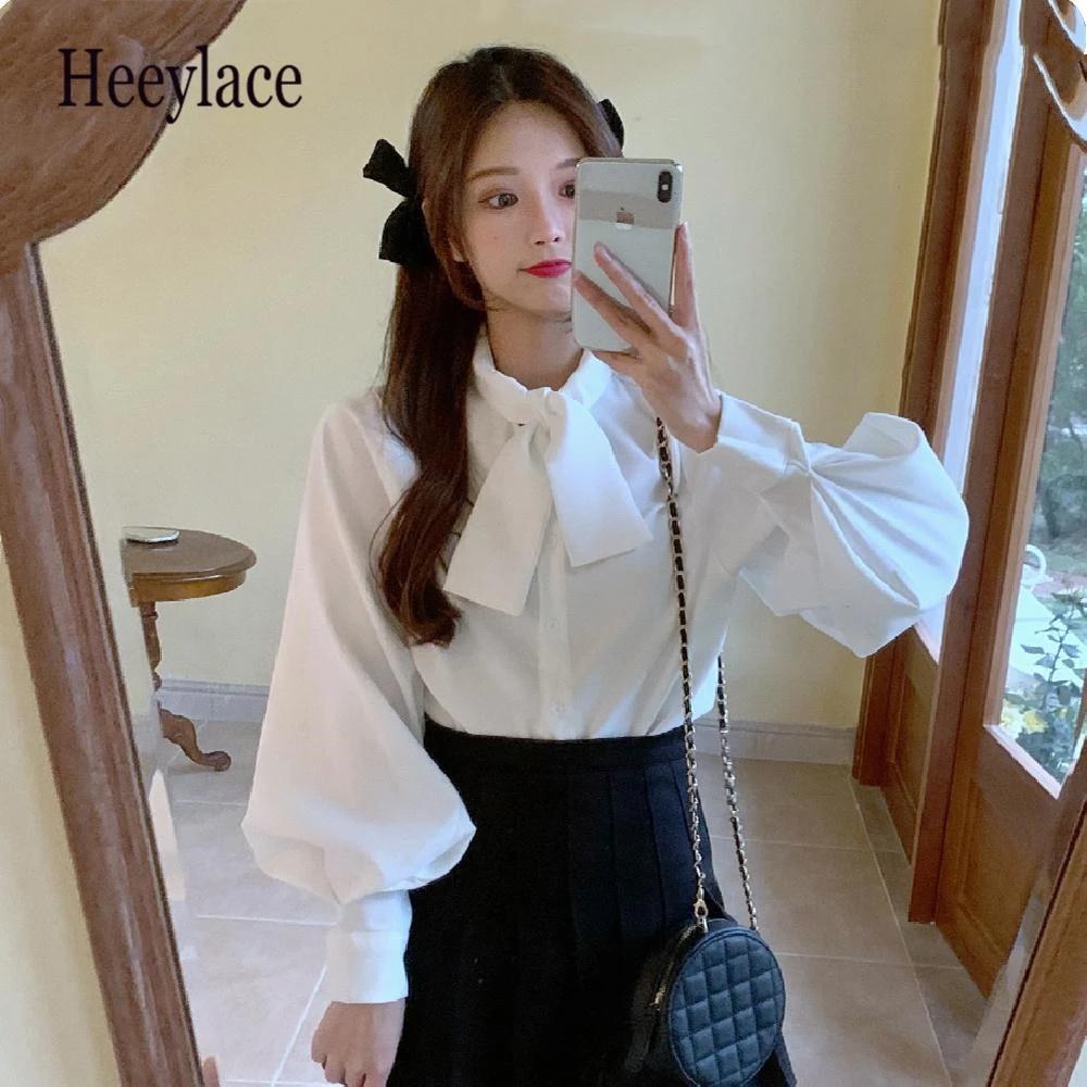 Женская блузка с бантом, элегантная Свободная рубашка с рукавами-фонариками, осень 2021