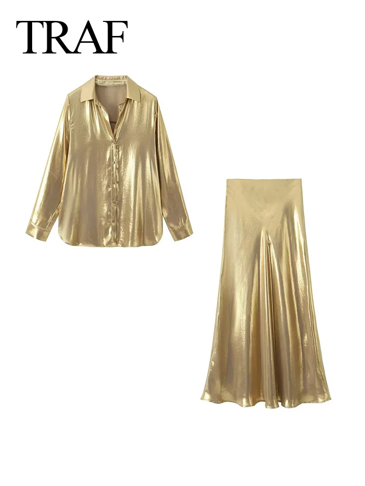 Женская блузка с длинным рукавом и отложным воротником, с металлическим покрытием