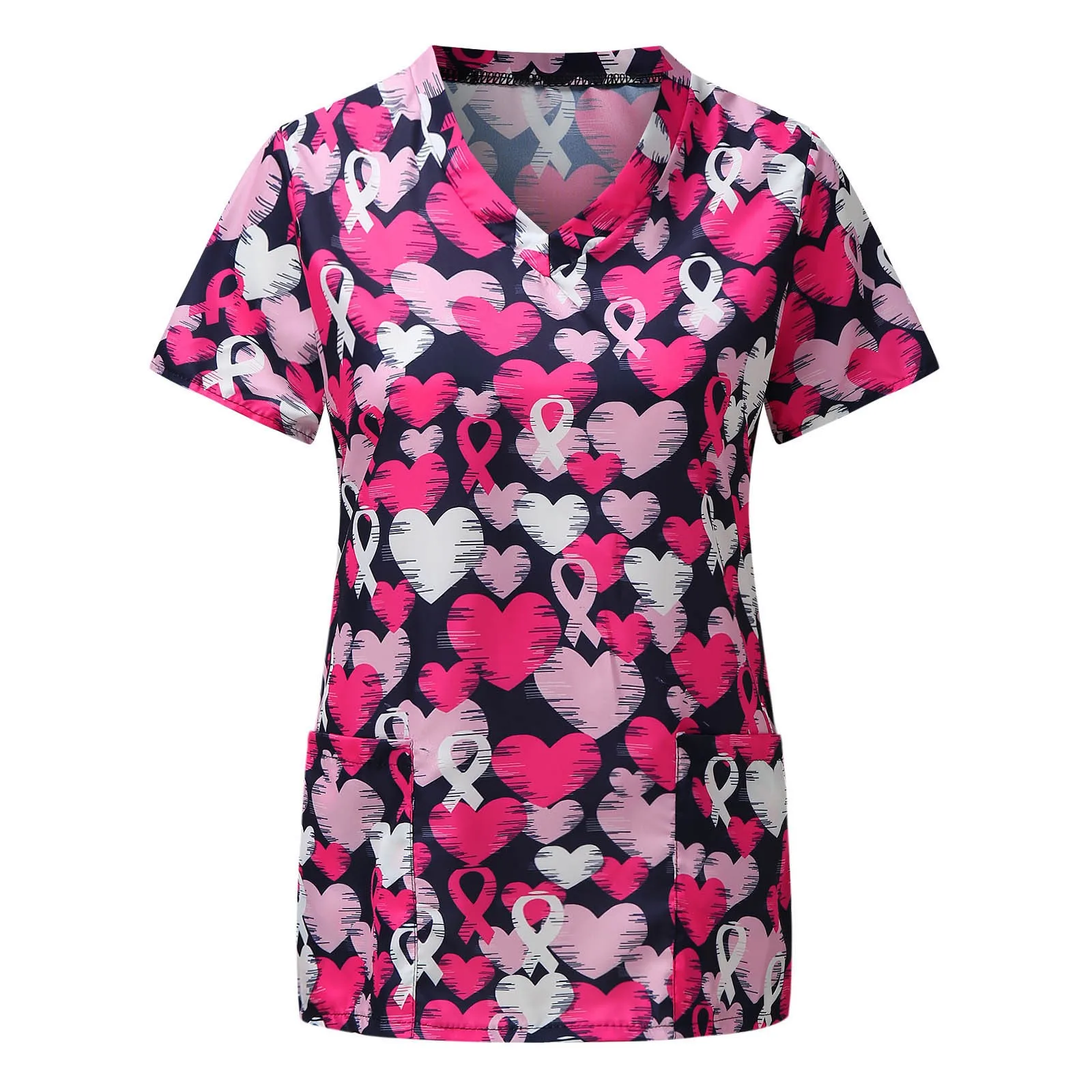 Женская блузка с коротким рукавом, с принтом в виде сердца