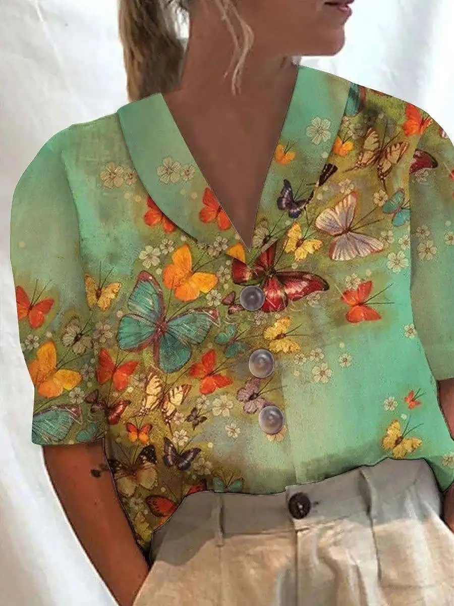 Женская блузка, Новинка лета 2022, платье для матерей, шифоновая рубашка, женские футболки с коротким рукавом и круглым вырезом для матерей ср...