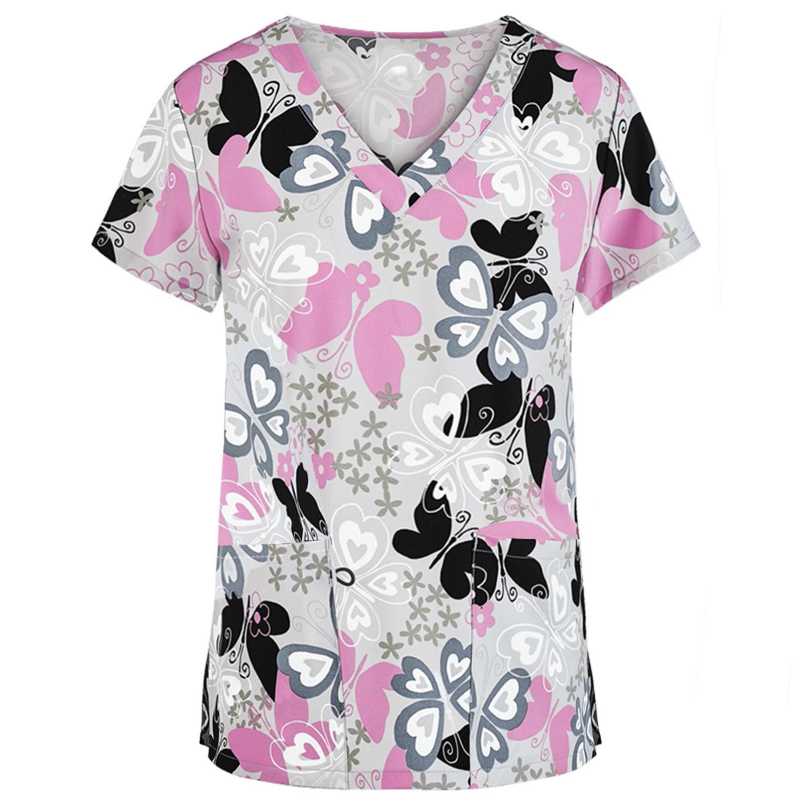 Женская блузка с коротким рукавом и v-образным вырезом, рабочая форма, топы с мультяшным принтом XL горячий розовый
