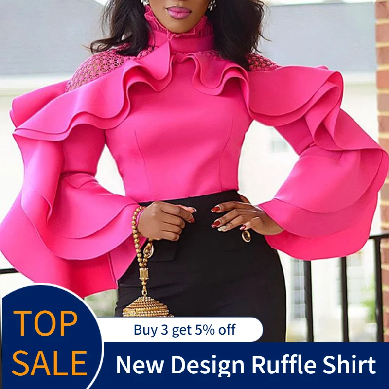 Женская блузка с оборками на рукавах, осенняя облегающая блузка в африканском стиле для вечерние НКИ, клуба, офиса