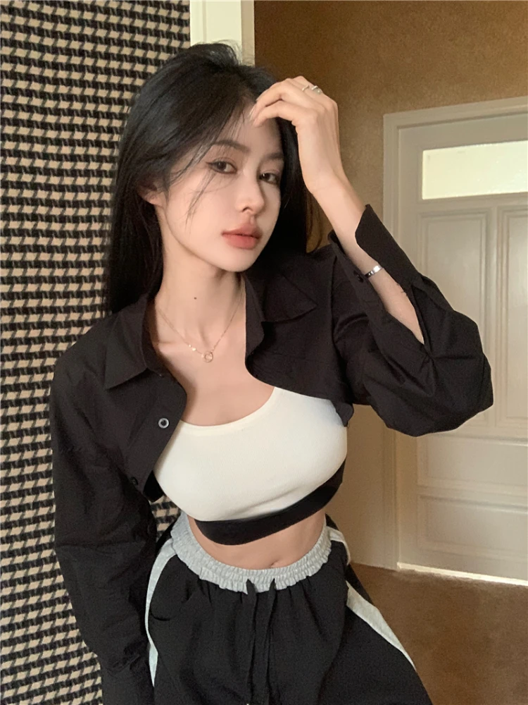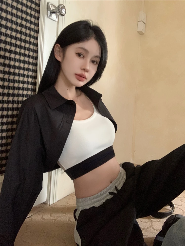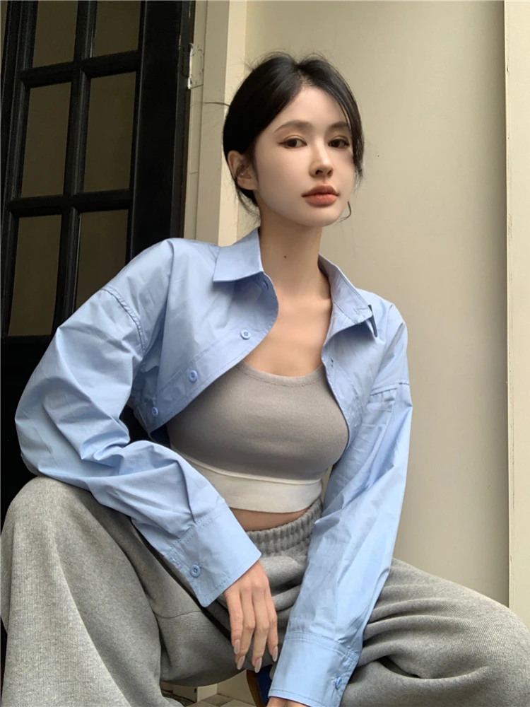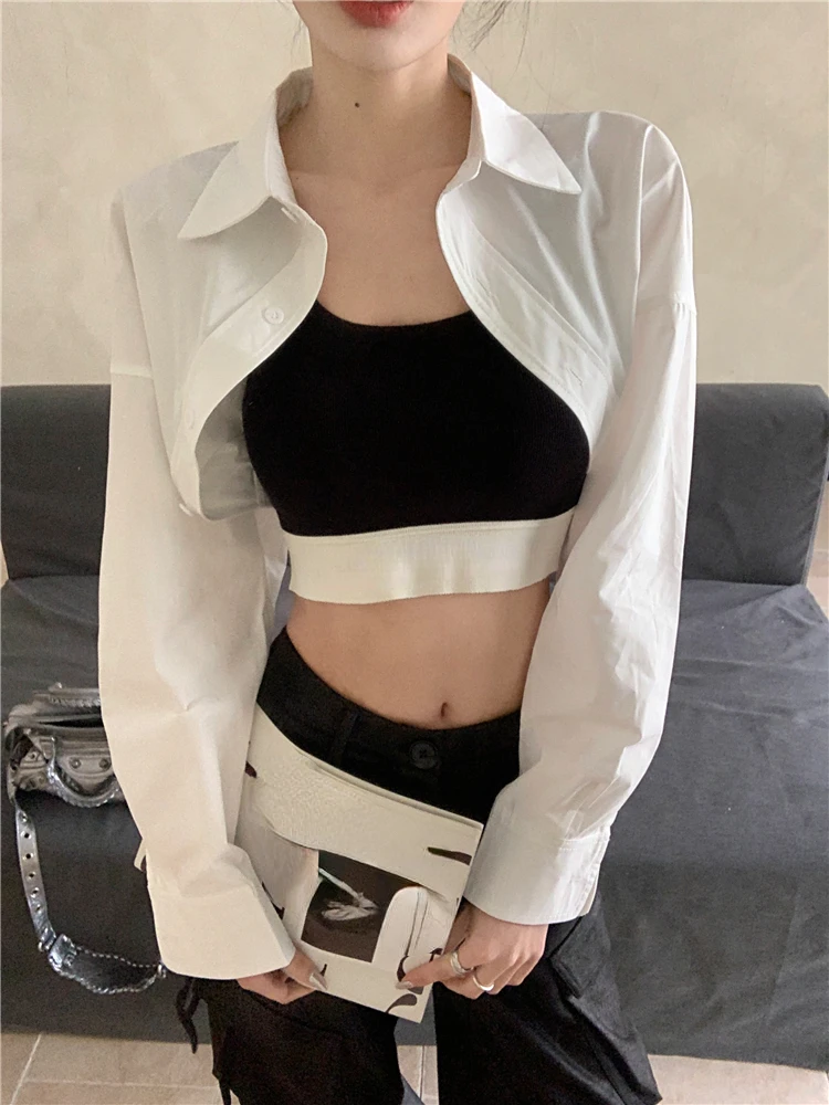 Женская блузка с отложным воротником, белая укороченная блузка, универсальная рубашка, лето 2024