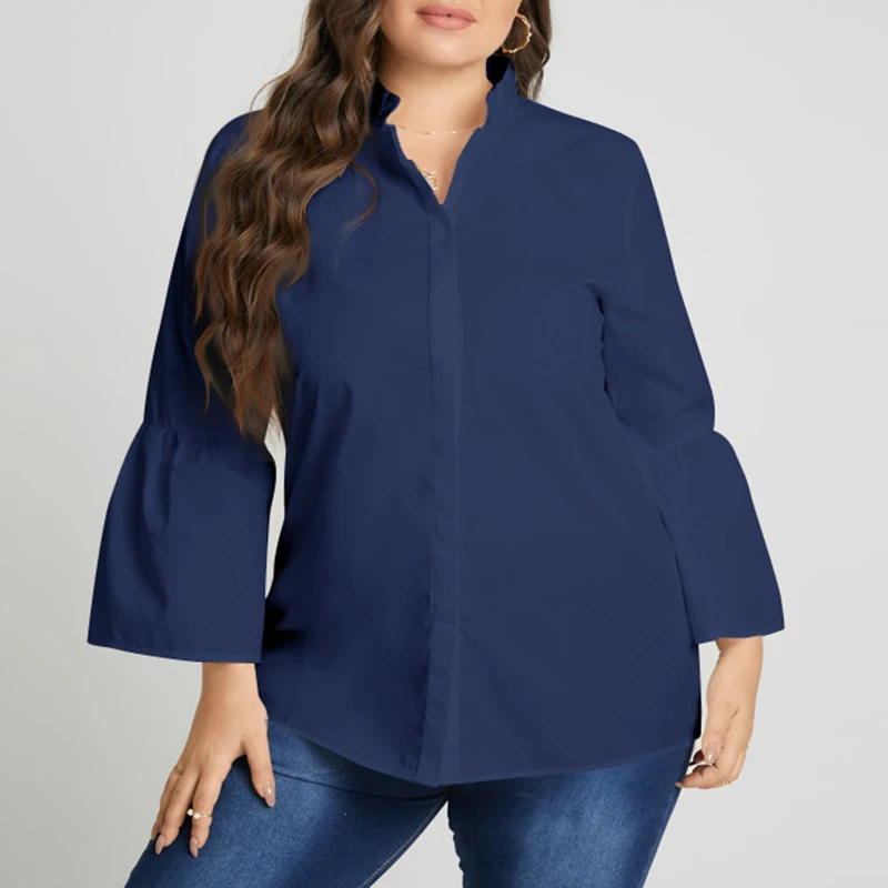 Женская блузка VONDA 2022, осенние Рубашки с длинным рукавом, топы, сексуальные элегантные офисные рубашки с V-образным вырезом и пуговицами, блу...