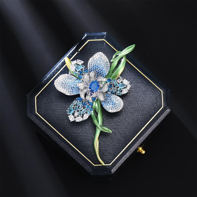 Женская брошь в элегантном дизайне «легкая роскошь», с фиолетовым и золотым цветком, покрытая глазурью. Модная, универсальная, нишевая брошь.