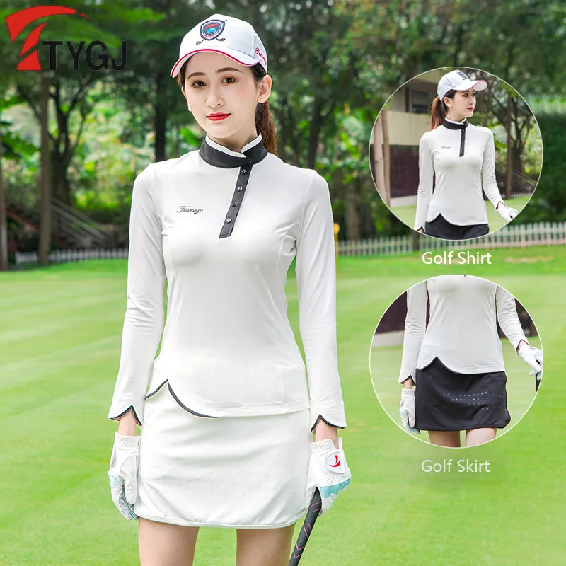 Женская быстросохнущая футболка для гольфа TTYGJ, сезон весна-лето, Солнцезащитная рубашка с длинными рукавами, Женская юбка с высокой талией, дышащие облегающие комплекты