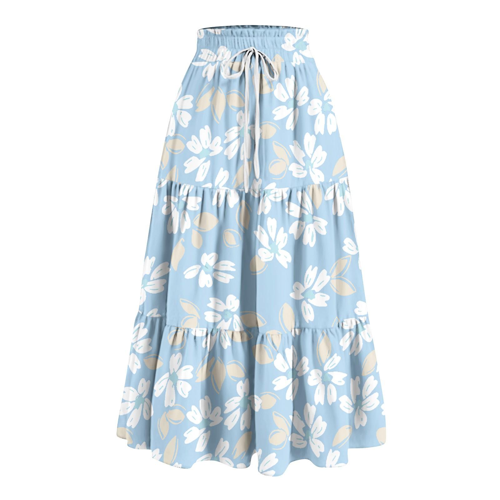 Женская весенняя повседневная длинная юбка с оборками, однотонная юбка, ретро-юбка в складку XXL светло-синий