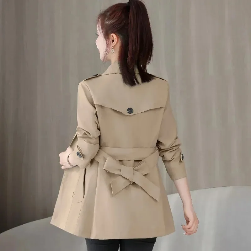 Женская ветровка средней длины, Повседневная Свободная двубортная ветровка с V-образным вырезом, весна-осень 2024