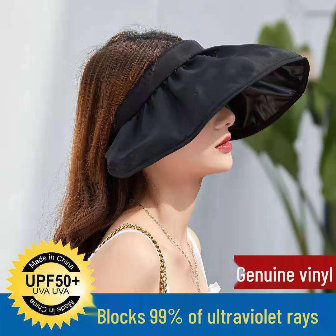 Женская виниловая шляпа от солнца двойного назначения с защитой от УФ-лучей и широкими полями чёрный