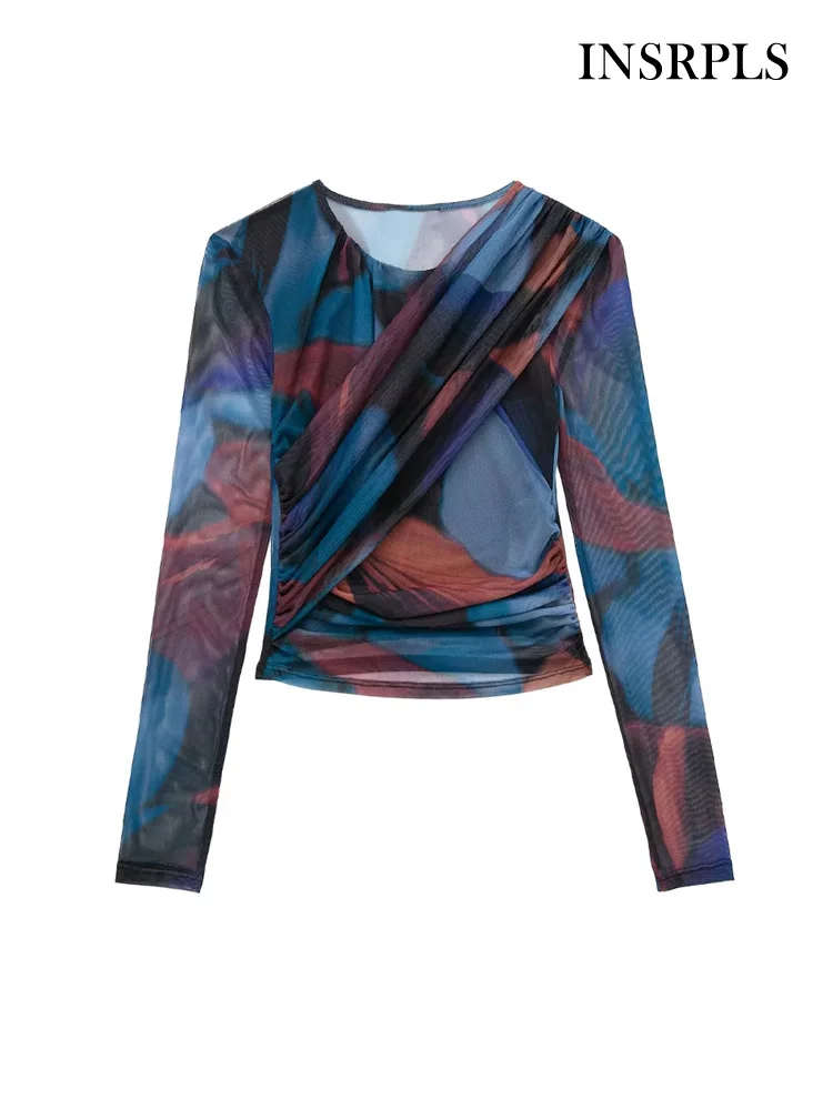 Женская винтажная Блузка с оборками, круглым вырезом и длинным рукавом