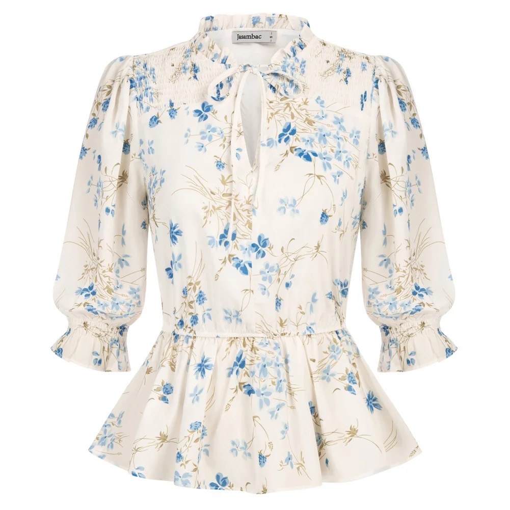 Женская винтажная Блузка с поясом на резинке, V-образным вырезом и рукавом 3/4