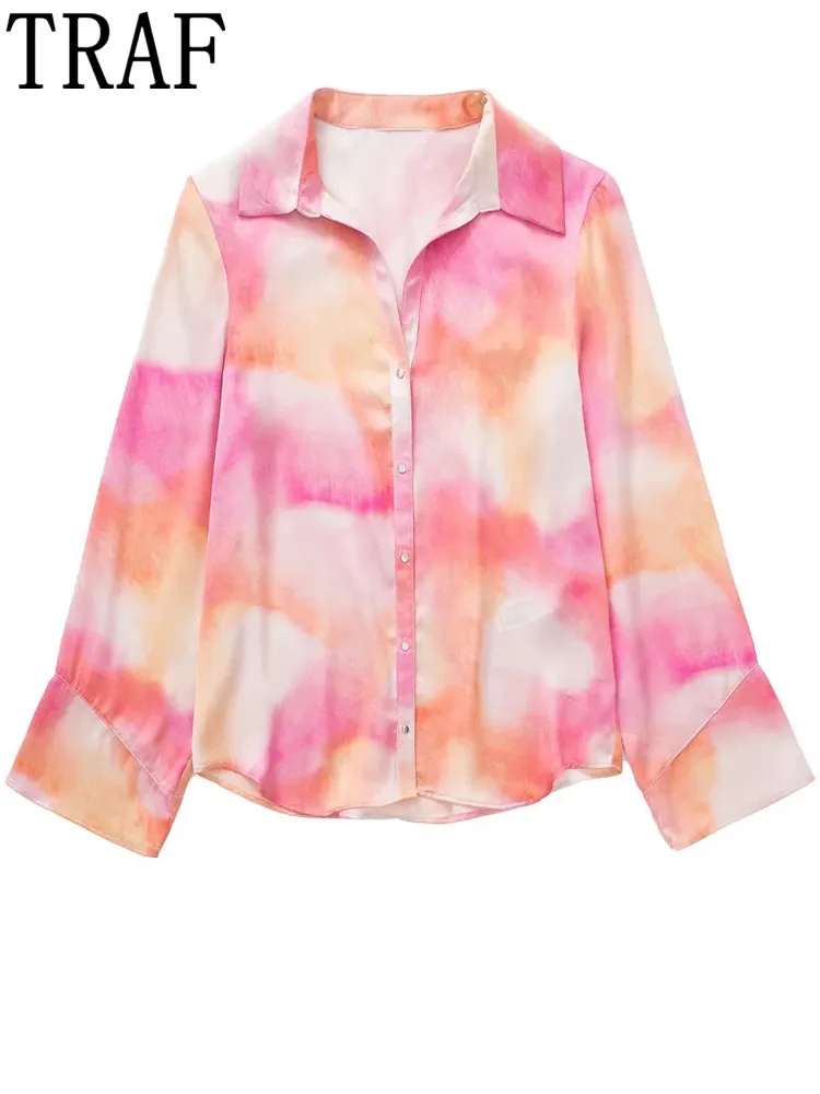 Женская винтажная блузка с длинным рукавом, на пуговицах