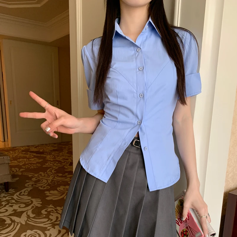 Женская винтажная блузка с манжетами, элегантная белая блузка с коротким рукавом, y2k, лето 2023