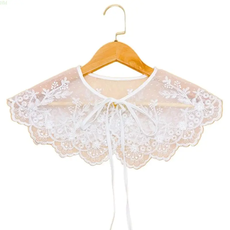 Женская винтажная милая вышивка с цветочным кружевом, шаль с искусственным накладным воротником, прозрачная сетчатая шаль с шарф