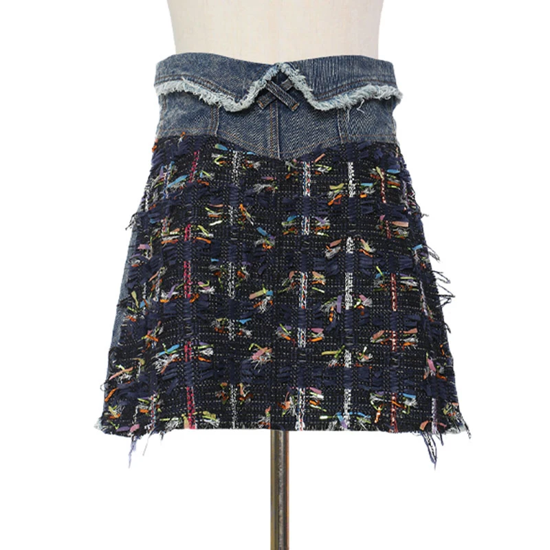Женская винтажная разноцветная мини-юбка TWOTWINSTYLE, с высокой талией, трапециевидной формы, 2021, осенняя одежда, 2021