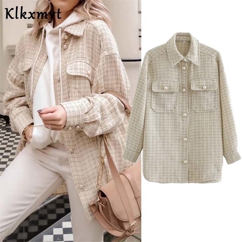 Klkxmyt Autumn Jacket Women Vintage Pockets Casual Loose Long Sleeve Jacket Coat pearl breasted Outwear Female Shirt Coat Tops 201112, Picture color