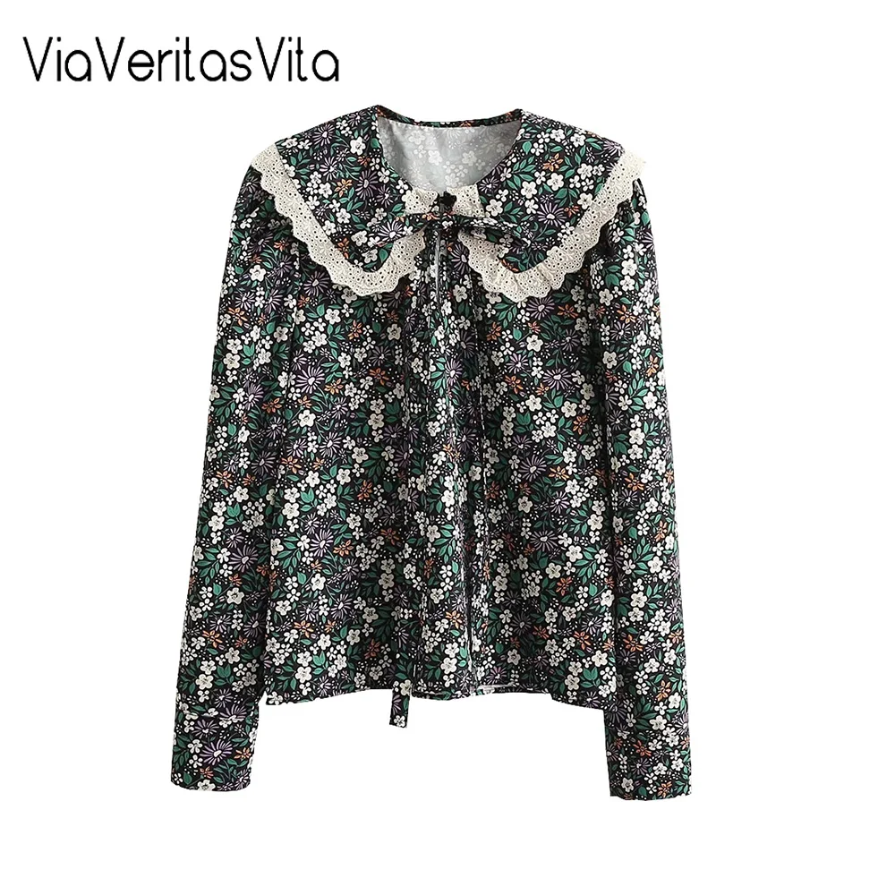 Женская винтажная рубашка с цветочным принтом, кружевные женские топы и блузки с воротником в стиле пэчворк, модная женская блузка на осень ...