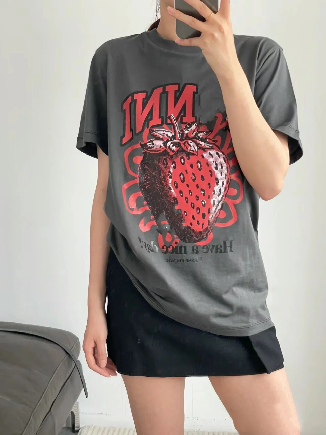 Женская винтажная хлопковая футболка с коротким рукавом, круглым вырезом и принтом фруктов