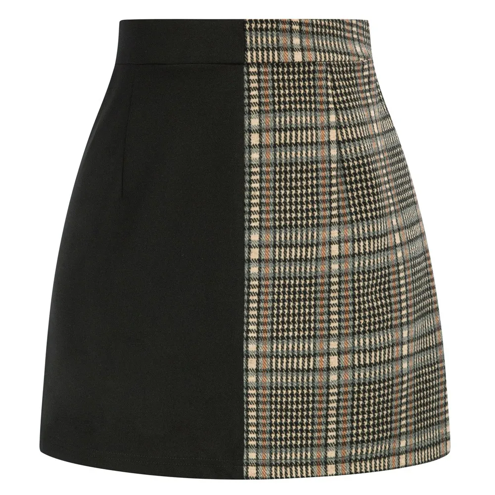 Женская винтажная юбка из контрастной ткани BP, мини-юбка А-силуэта с высокой талией и высокой талией