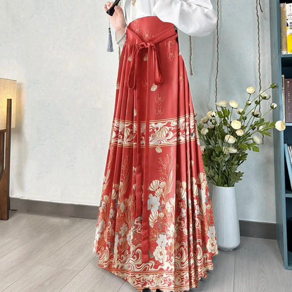 Женская винтажная юбка макси в китайском стиле с цветочным принтом и высокой талией