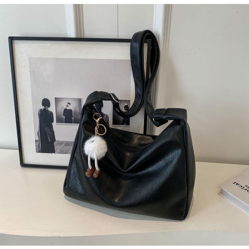 Женская вместительная модная сумка через плечо на одно плечо для поездок на работу и обратно (With pendant) чёрный