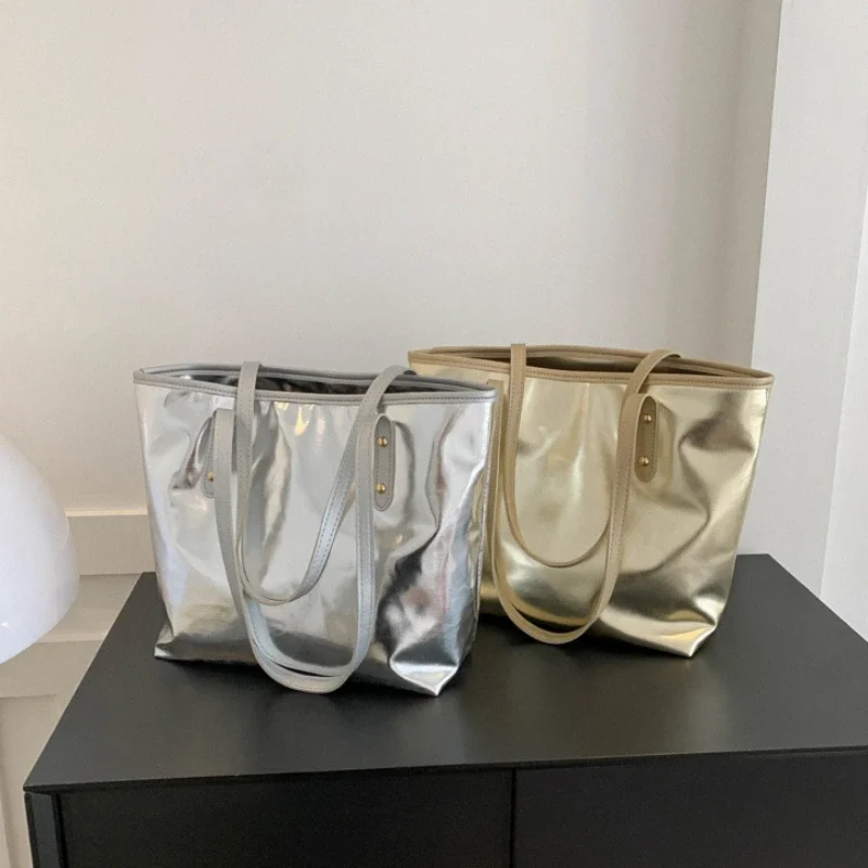Женская вместительная сумка-тоут, золотистая или Серебристая модная сумка для покупок, 2023
