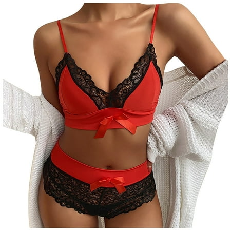 Qcmgmg Women s Lingerie Set Floral Sexy Lace Bra and Panty Set Nightwear Babydoll XXXL