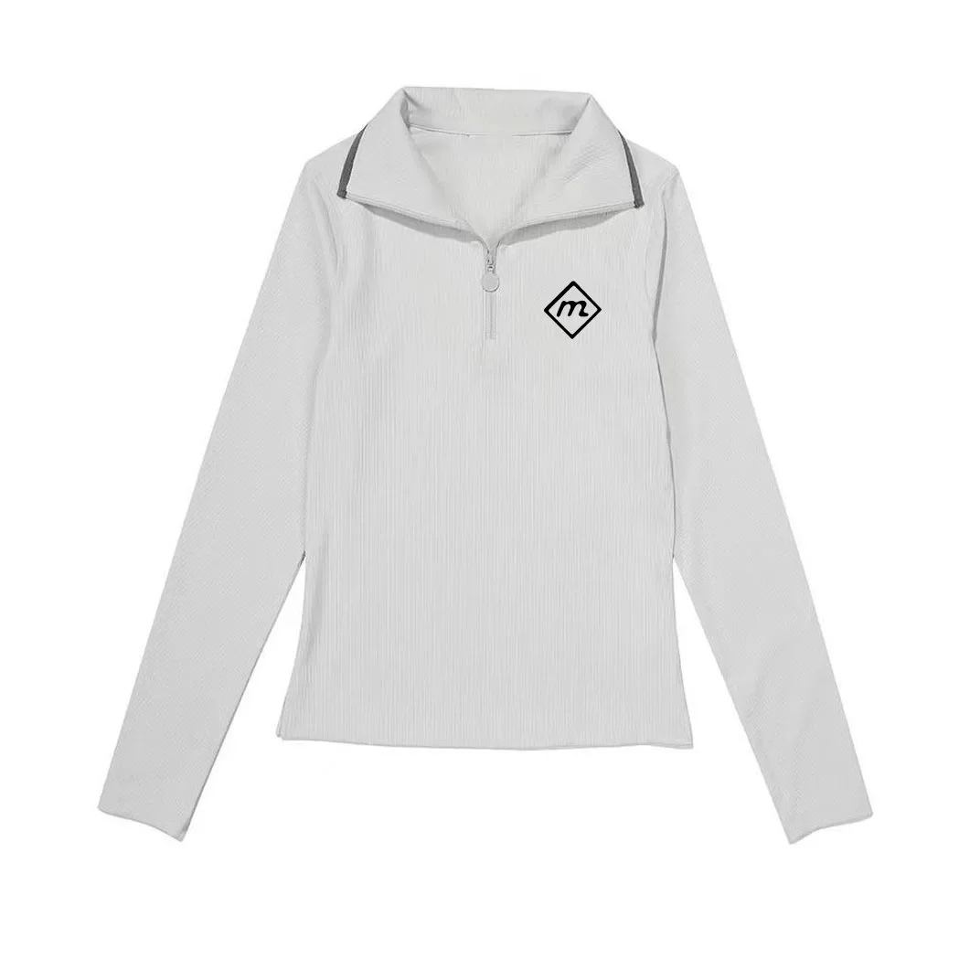 Женская вышитая рубашка для гольфа на молнии, с высоким воротником, тонкая, внутренняя, облегающая, с длинным рукавом, Базовая рубашка, одежда для гольфа