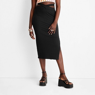 Женская вязаная в рубчик юбка-миди с перекрестной талией - Future Collective with Alani Noelle, Черный