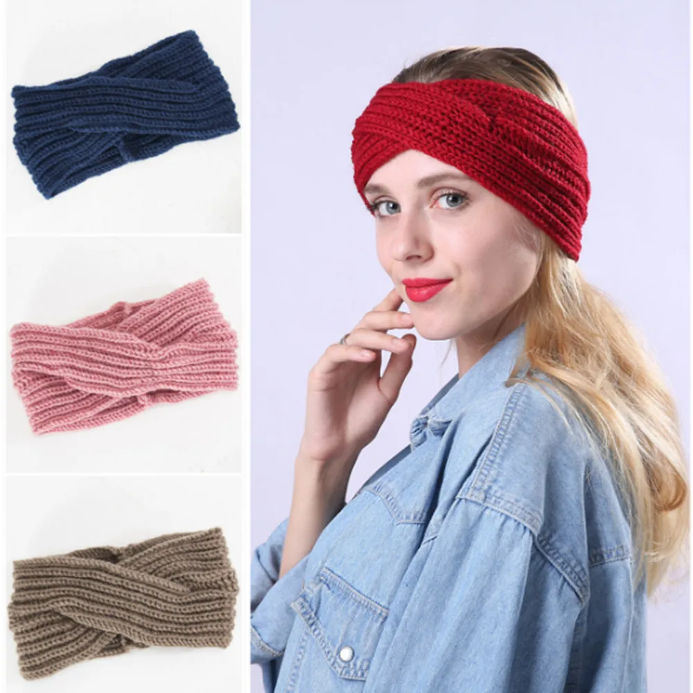 Женская вязаная теплая повязка на голову, головной убор, Спортивный Тюрбан H007