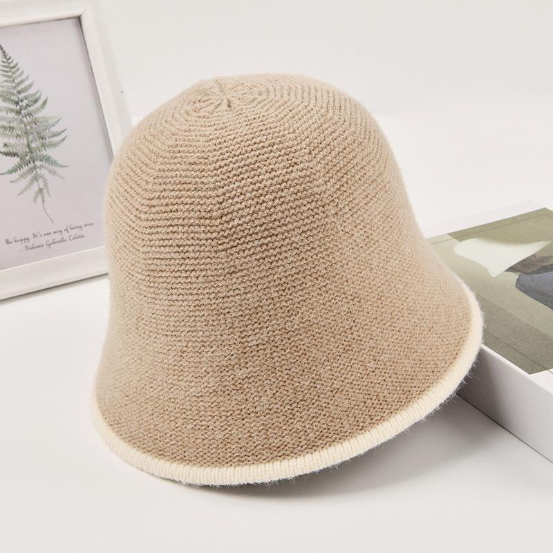 Женская вязаная шапка Корейская версия Однотонная шапка-рыбак Осень и зима Толстая теплая шапка One size