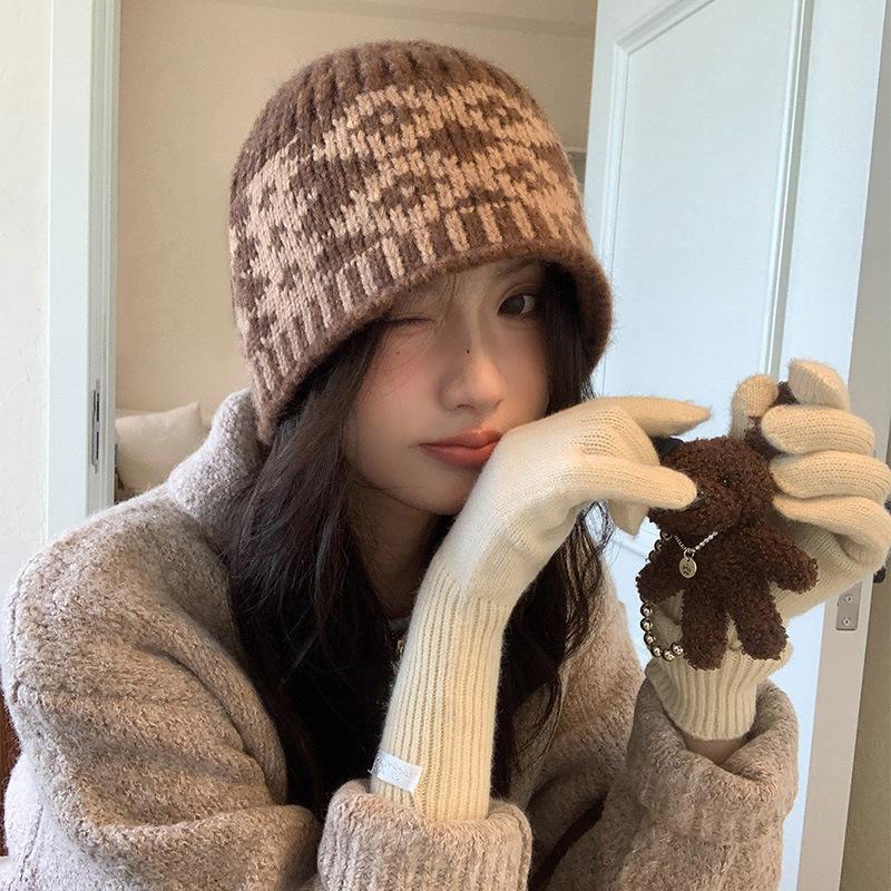 Женская вязаная шапка из смешанной шерсти в стиле ретро, шапка для сохранения тепла, большая, для головы, холодостойкая шапка для мужской головы кофейный